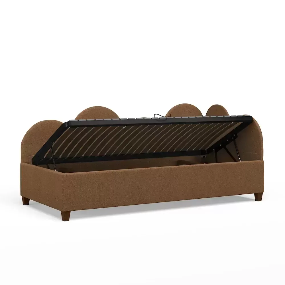 Lova Melita su patalynės dėže, čiužiniui 90x200. Kairinis kampas. Audinys Now or never 56 (nedraugiškas gyvūnams). Parduodama kartu su čiužiniu Kids Comfort, jo aukštis 15 cm.