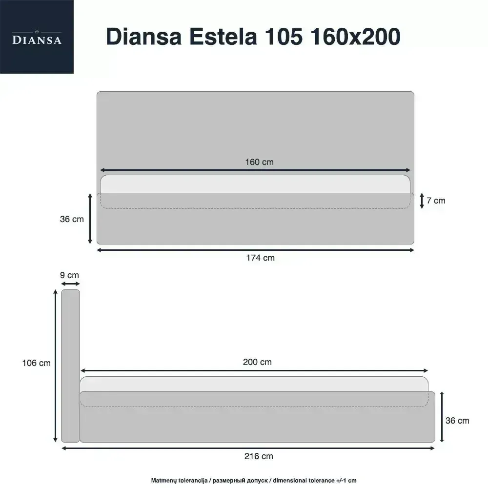Lova Estela 105 su patalynės dėžės, čiužiniui 160x200. Audinys Monolith 04 (nedraugiškas gyvūnams).