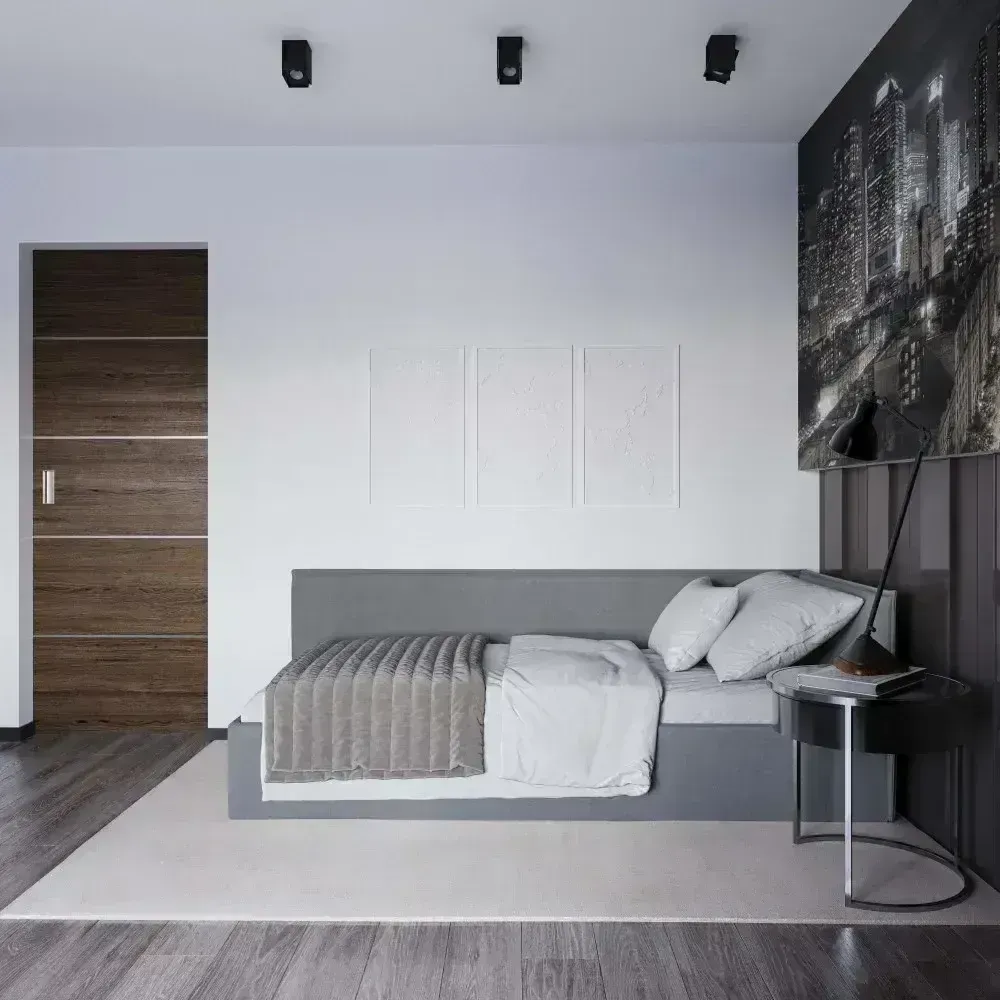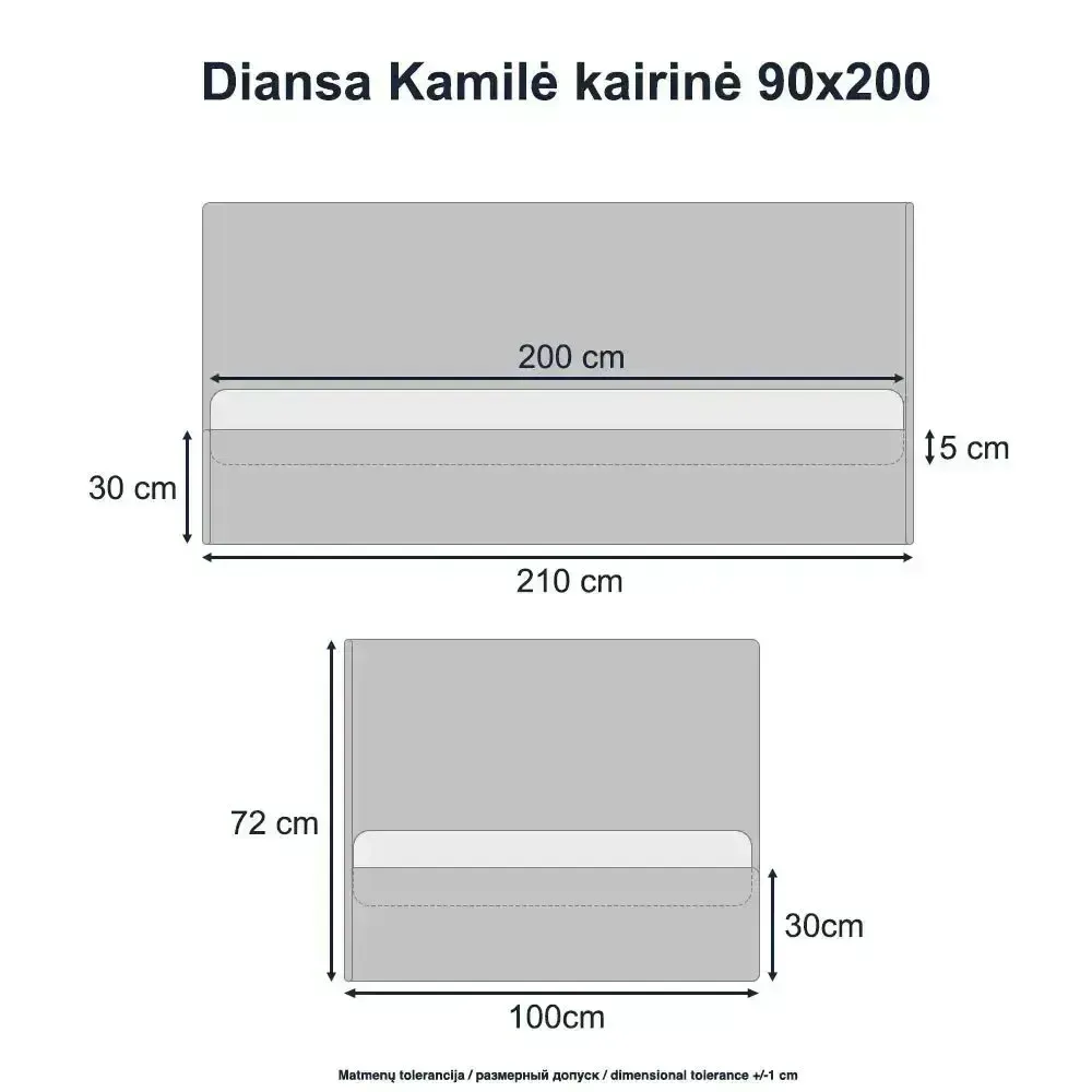- Nugarinės galvūgalio ir šoninės sienelės dalys aptrauktos tokiu pat audiniu kaip lova.
