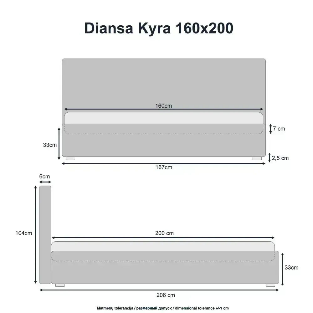 Lova Kyra be patalynės dėžės, čiužiniui 160x200. Audinys Havana 17 (nedraugiškas gyvūnams).