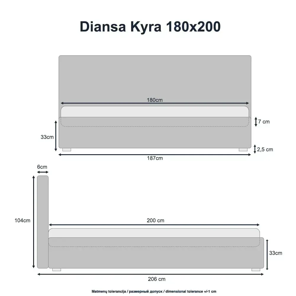 Lova Kyra be patalynės dėžės, čiužiniui 180x200. Audinys Havana 17 (nedraugiškas gyvūnams).