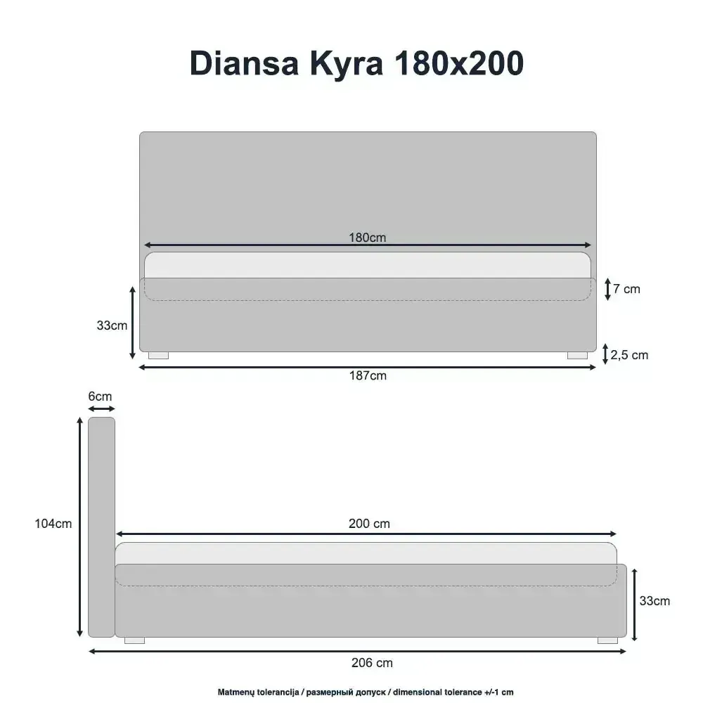 Lova Kyra be patalynės dėžės, čiužiniui 180x200. Audinys Soho 18 (nedraugiškas gyvūnams).