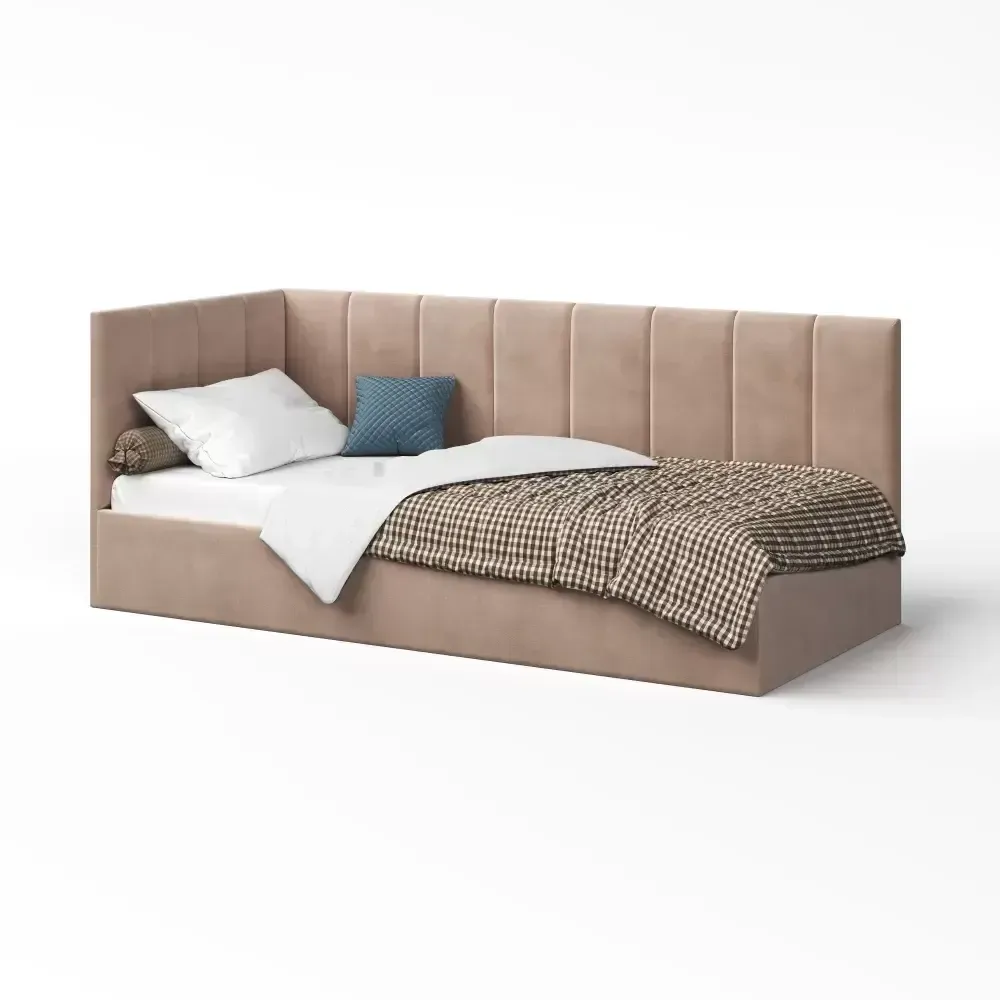 Lova Luka su patalynės dėže, čiužiniui 90x200. Dešininis kampas. Audinys Cloud 82. Turi surinkimo žymių.