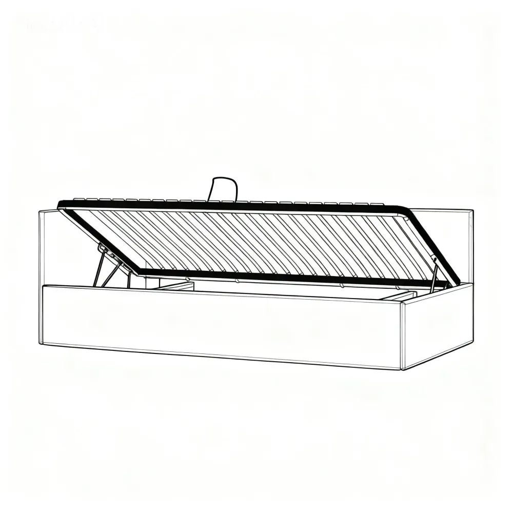 - Nugarinės galvūgalio ir šoninės sienelės dalys aptrauktos tokiu pat audiniu kaip lova.