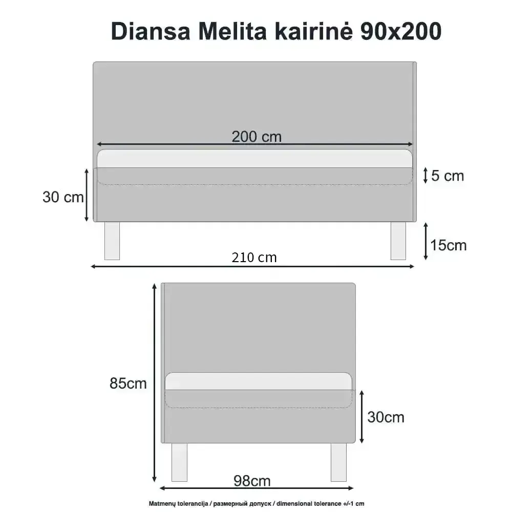 Lova Melita kairinė 90x200 Matt Velvet 34