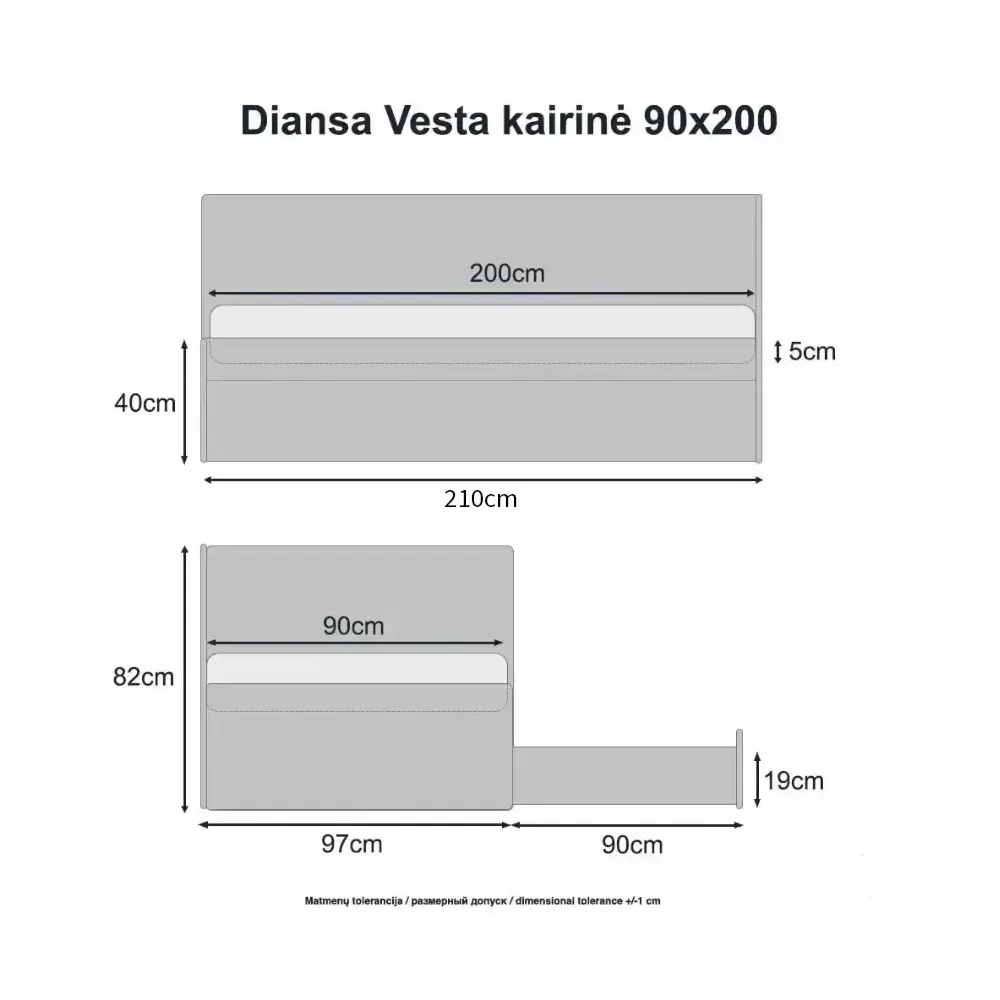 - Nugarinė galvūgalio dalis aptraukta tokiu pat audiniu kaip lova, šoninės sienelės nugarinė dalis aptraukta juoda medžiaga.