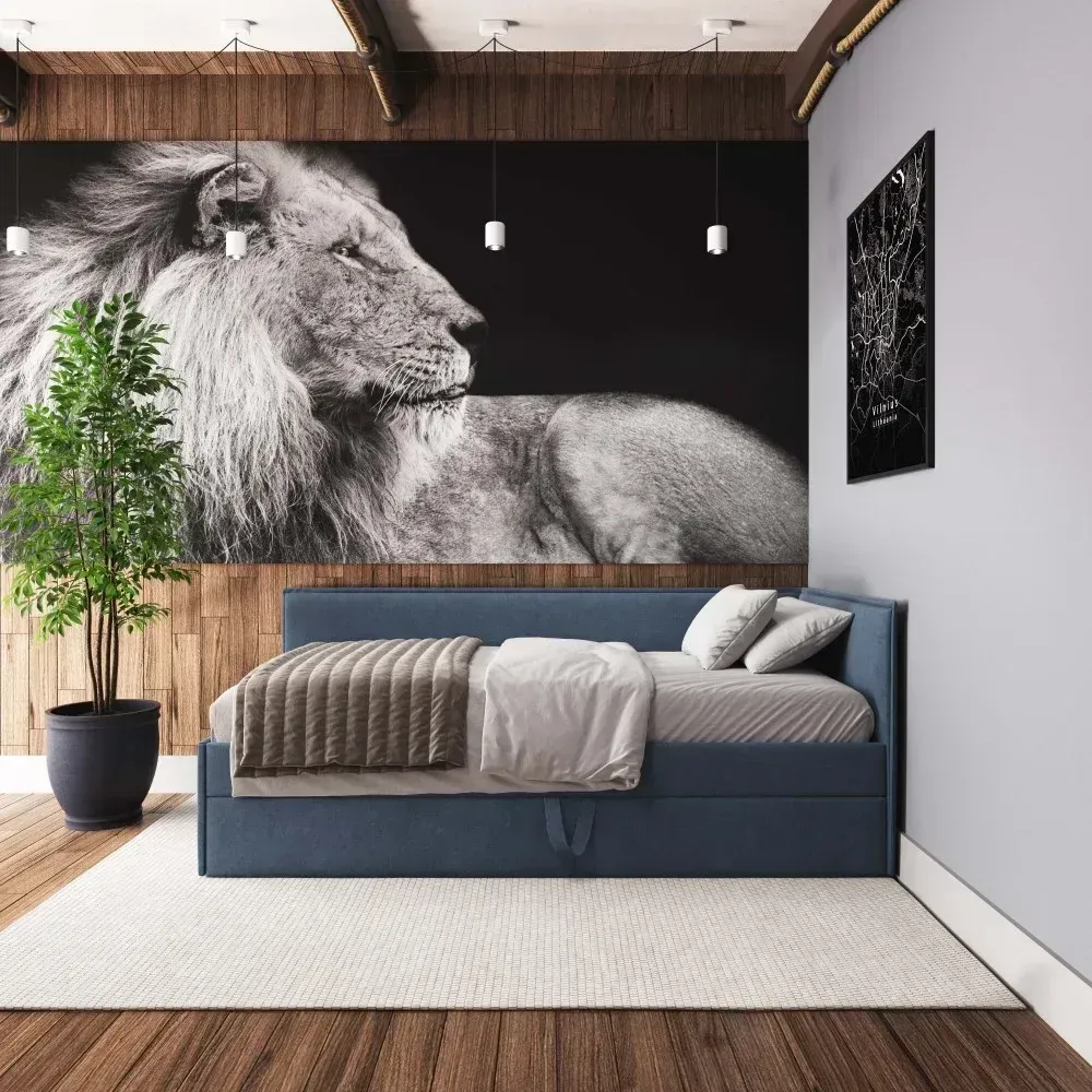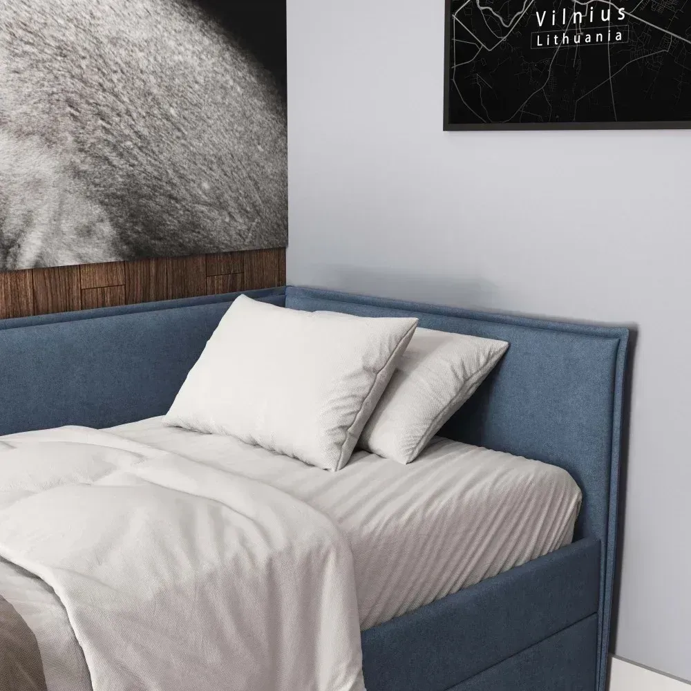 Lova Vesta - su papildomu ištraukiamu čiužiniu. Tai puikus sprendimas mažiems miegamiesiems ar ieškantiems universalumo. Galimas kairinis arba dešininis kampas. Papildomai galima užsakyti nuimamą apsauginę sienelę nuo iškritimo.