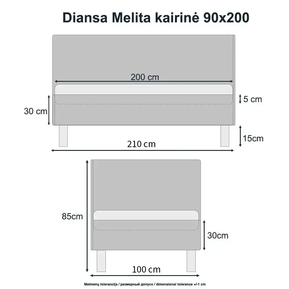 - Nugarinės galvūgalio ir šoninės sienelės dalys aptrauktos tokiu pat audiniu kaip lova.