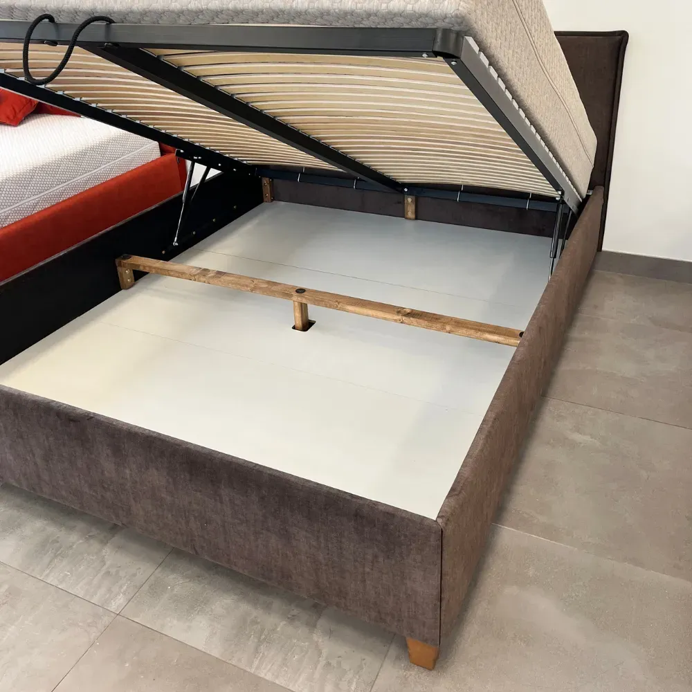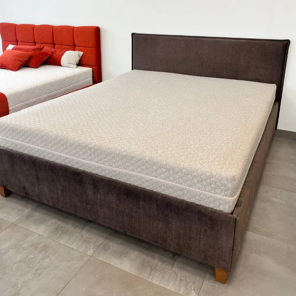 Lova Lėja su patalynės dėže, čiužiniui 160x200. Audinys Leon 12 (lengvai valomas, draugiškas gyvūnams). Lova iš ekspozicijos, turi surinkimo žymių.