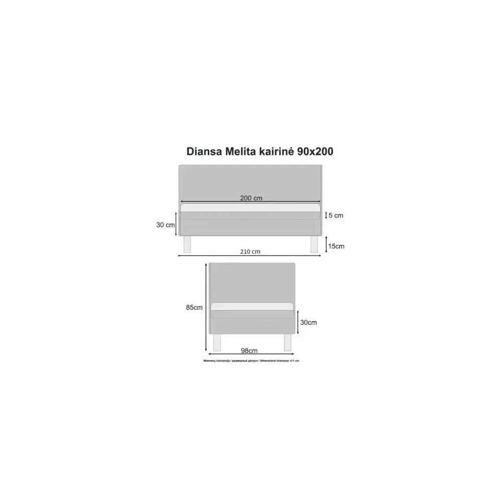 - Nugarinės galvūgalio ir šoninės sienelės dalys aptrauktos tokiu pat audiniu kaip lova.
