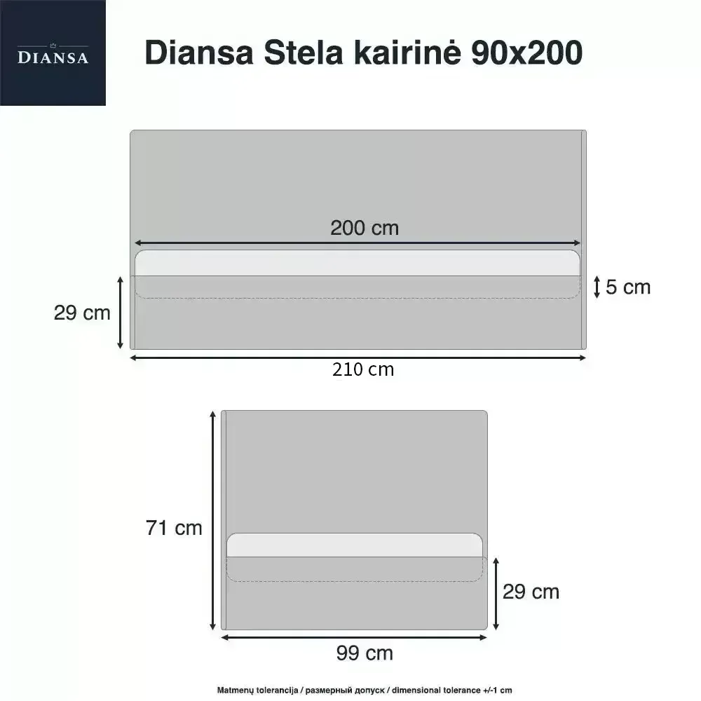- Nugarinės galvūgalio ir šoninės sienelės dalys aptrauktos tokiu pat audiniu kaip lova.